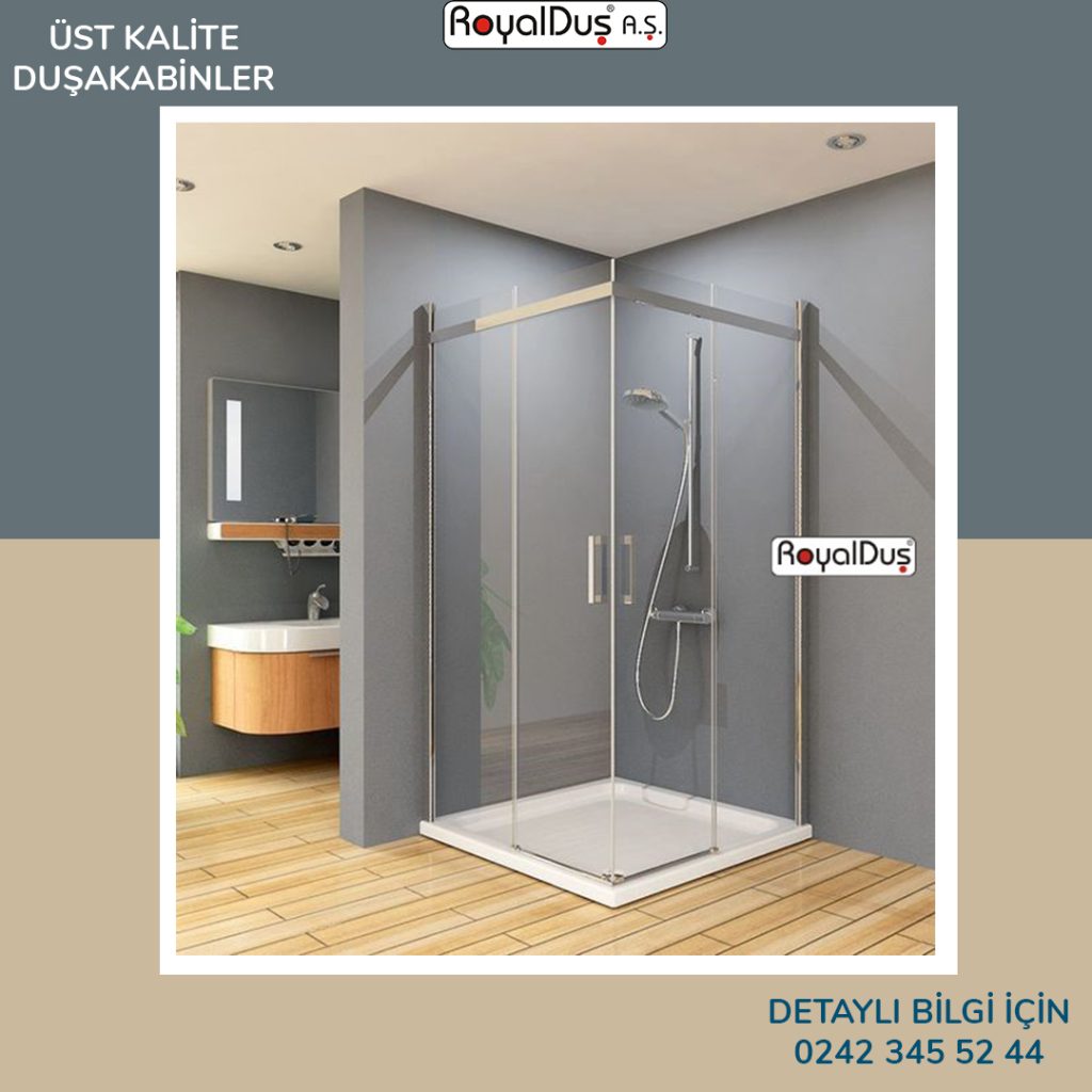 Antalya merkezli tescilli marka Royal Duş A.Ş. Standart duşakabin üretiminde kaliteyi ve estetiği ön planda tutar. Temperli cam ve dayanıklı profiller ile banyolarınıza değer katarken, müşteriye özel ölçü ve tasarım seçenekleri ile banyonuzu hayalinizdeki gibi tasarlamanıza olanak sağlar.